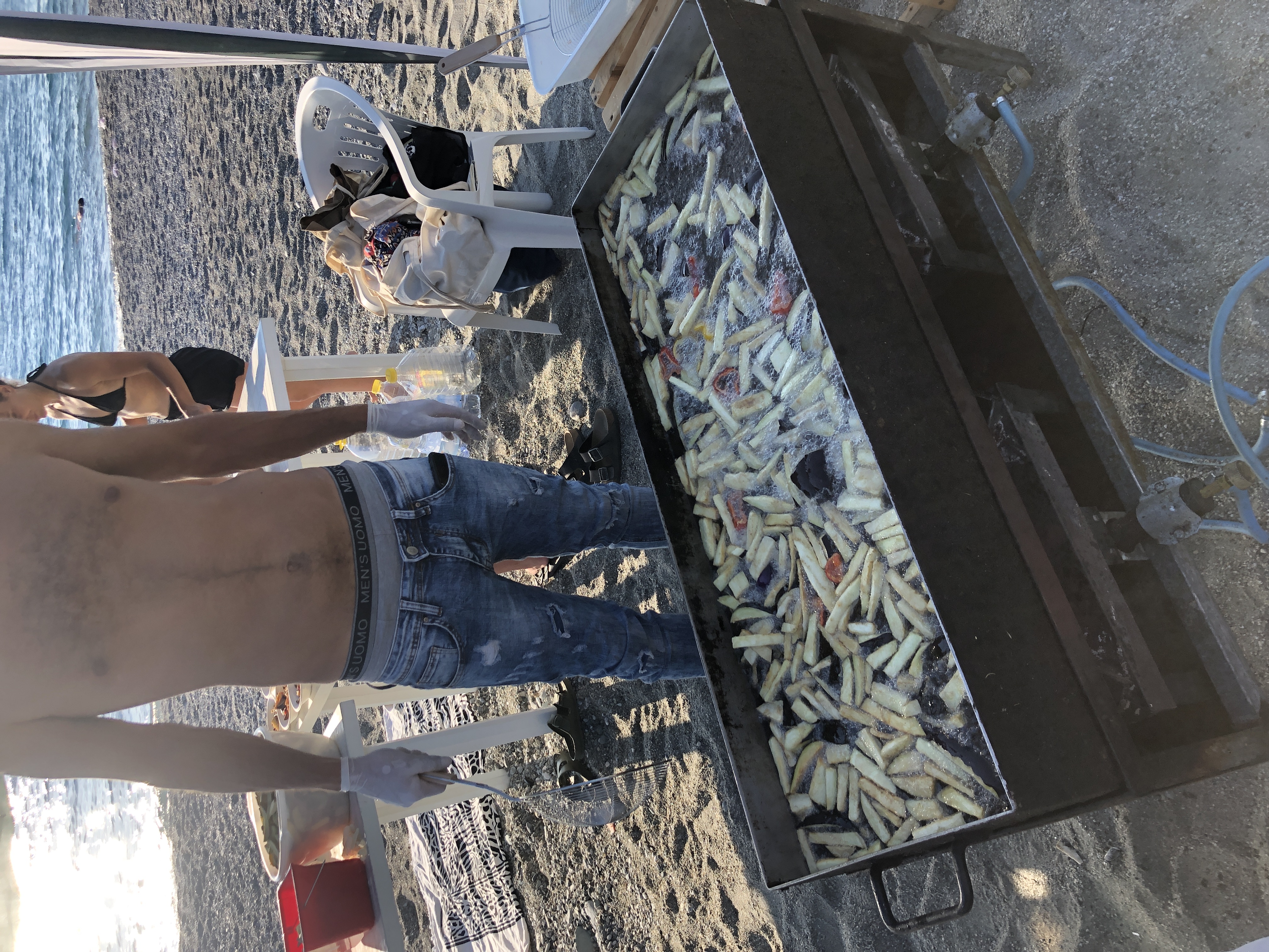 Fritto served at sunset, accompanied by a presentation and performance by the shore and immersed in sea water. Buckets of fritto for guests - each with its own story - surrounded a central informal stage on the beach where Fritto Misto presentations, readings and collective discussion took place, generating and exploring floating ideas for change.